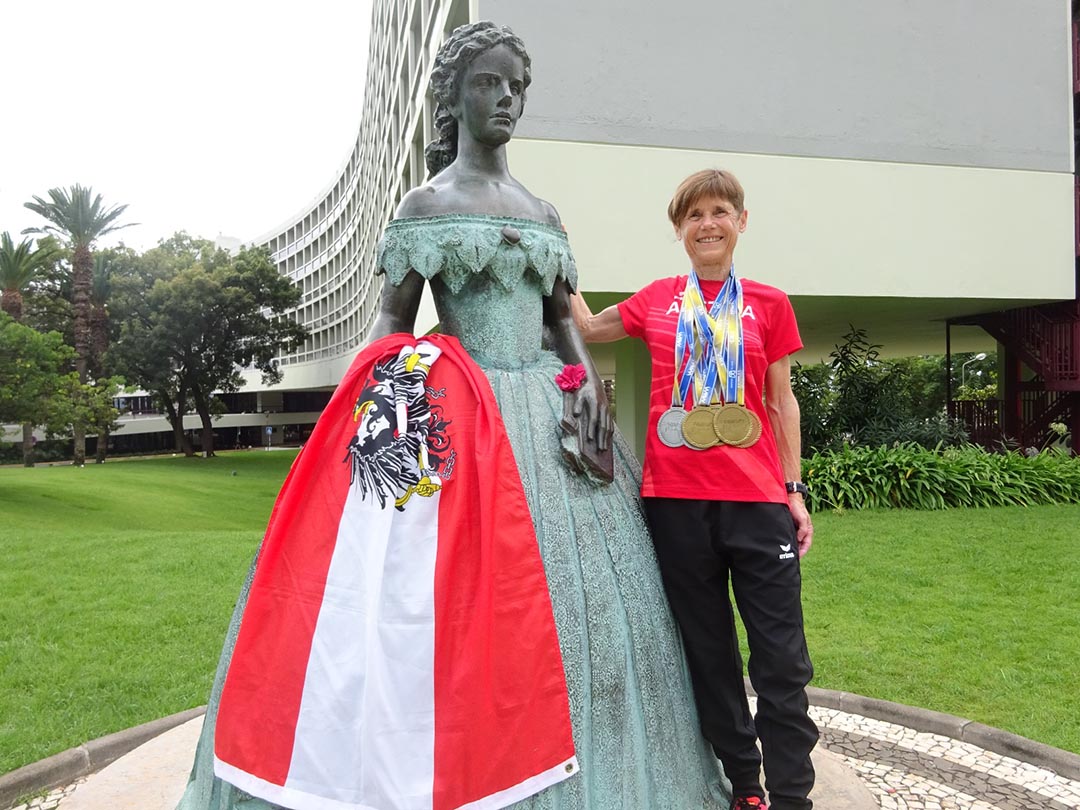 3x GOLD ÖR 10.000m 41:29,76 min. ÖR W60 , 8km Cross 35:27 min, Halbmarathon 1:30,36 h